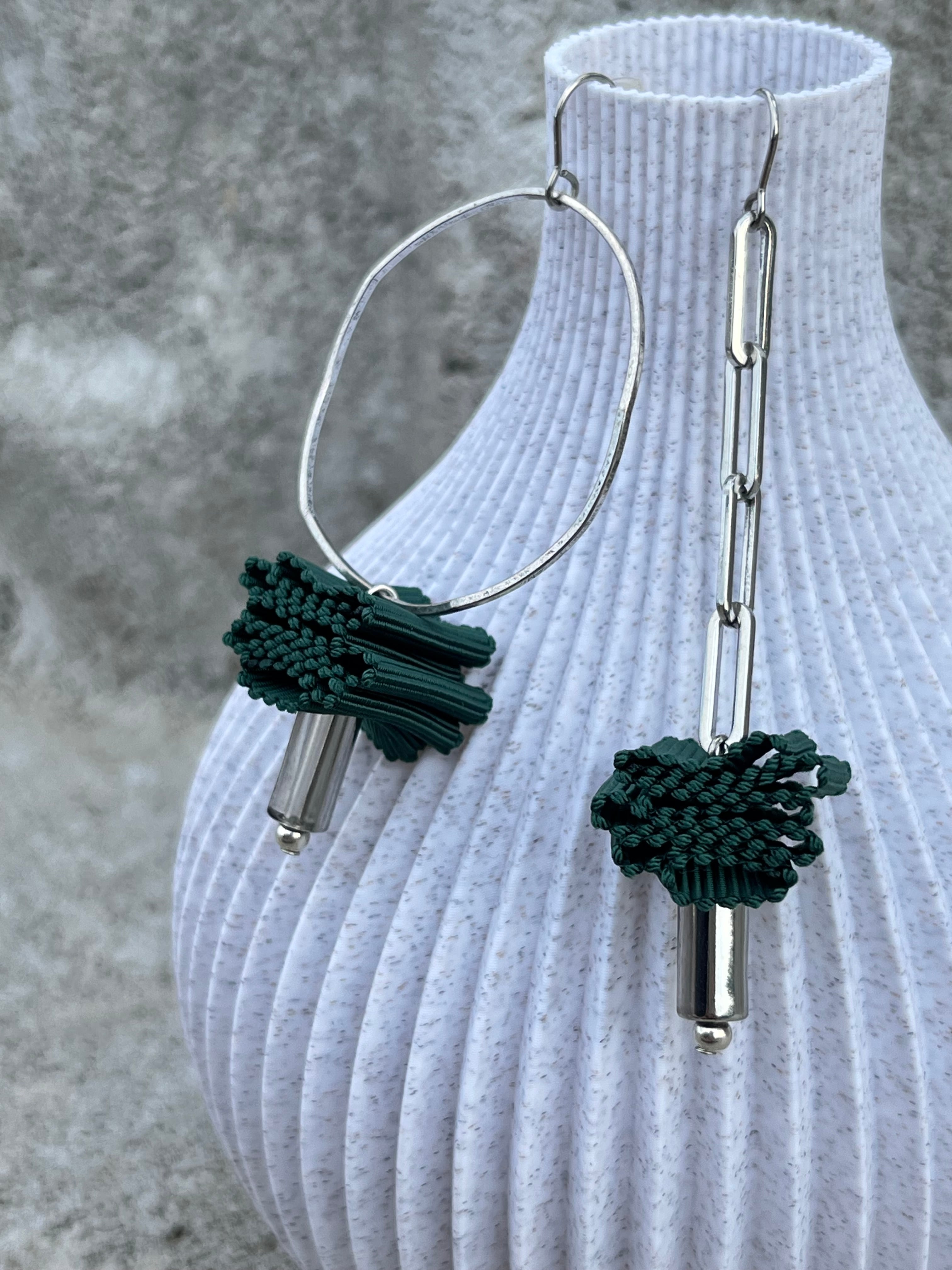 【ラスト1点】Overlap15 Chain asymmetry pierce/earring Dark green