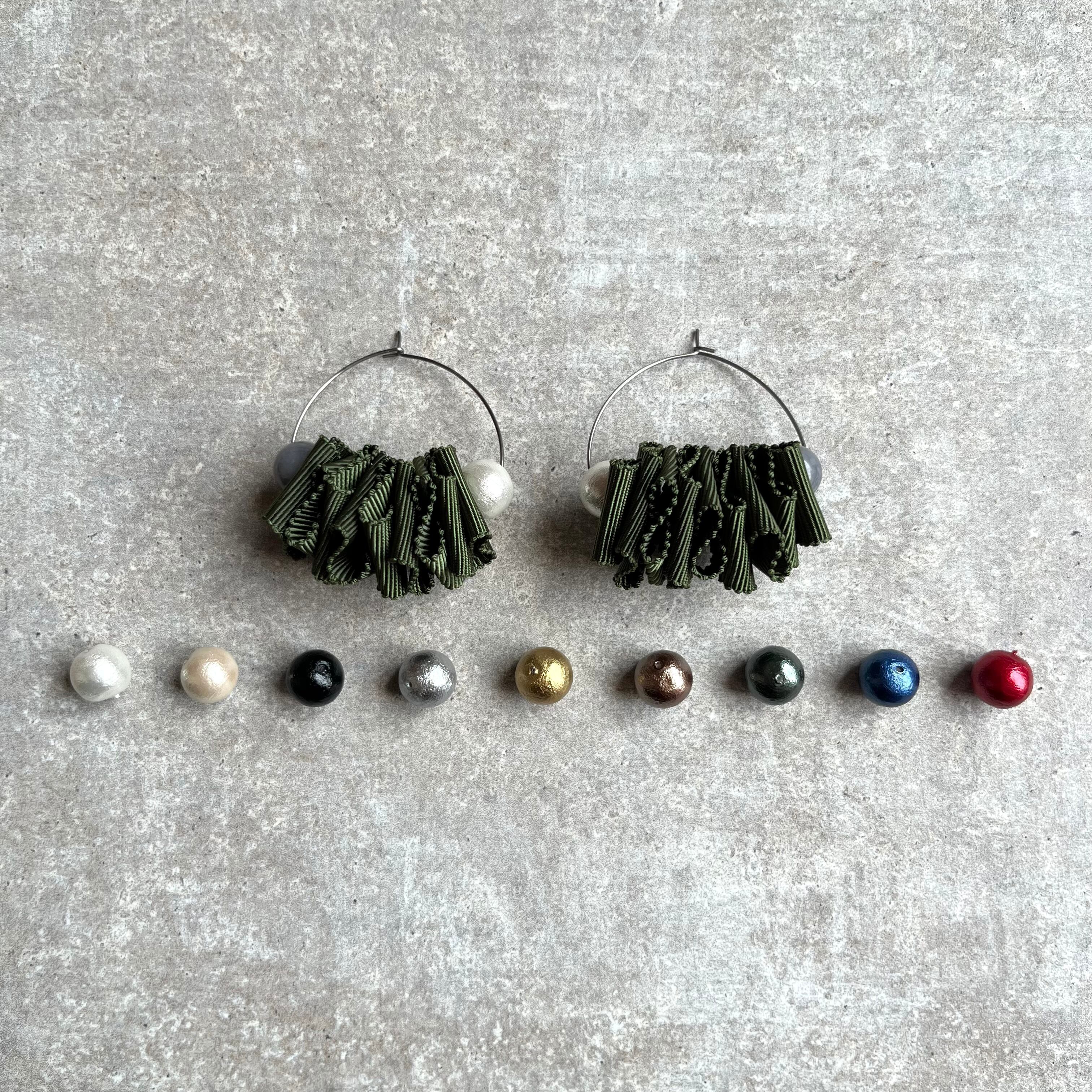 コットンパールやマットパーツなど合わせるパーツの色や質感の違いで、雰囲気が変わるので、綺麗めスタイルやシンプルなファンションのアクセントやモード系、個性的なファッションの方などどんなファッションスタイルにも合うアイテムが見つかります。