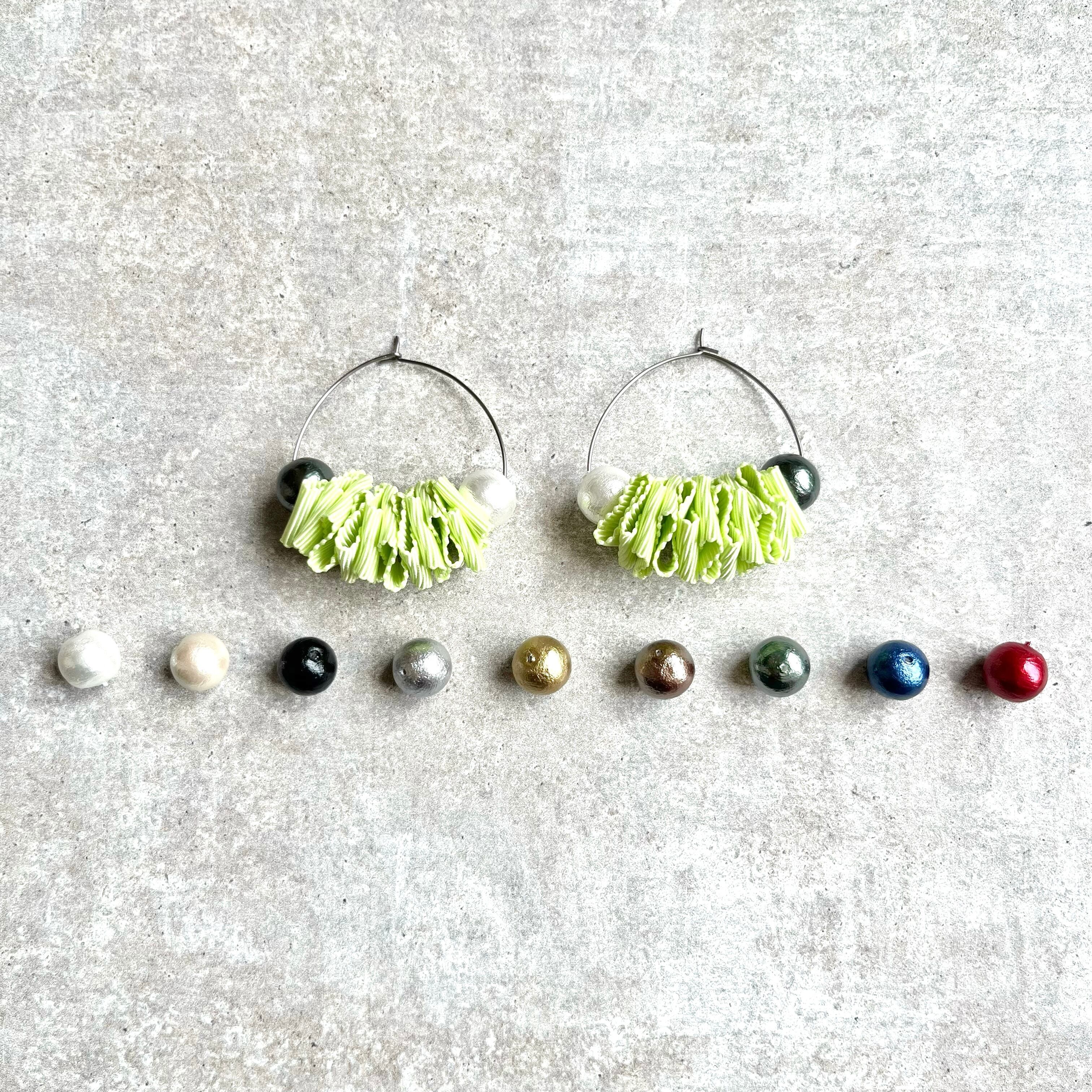 コットンパールやマットパーツなど合わせるパーツの色や質感の違いで、雰囲気が変わるので、綺麗めスタイルやシンプルなファンションのアクセントやモード系、個性的なファッションの方などどんなファッションスタイルにも合うアイテムが見つかります。